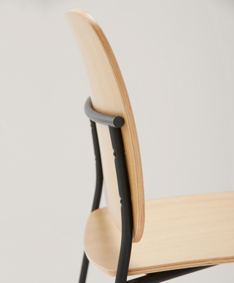 A chair chair with a design that highlights the essential. With smooth and clean curves, Aia is inspired by the Japanese sense of simplicity and harmony. Large surfaces of the finest wood and a line created by the tubular steel structure makes it visually very light.