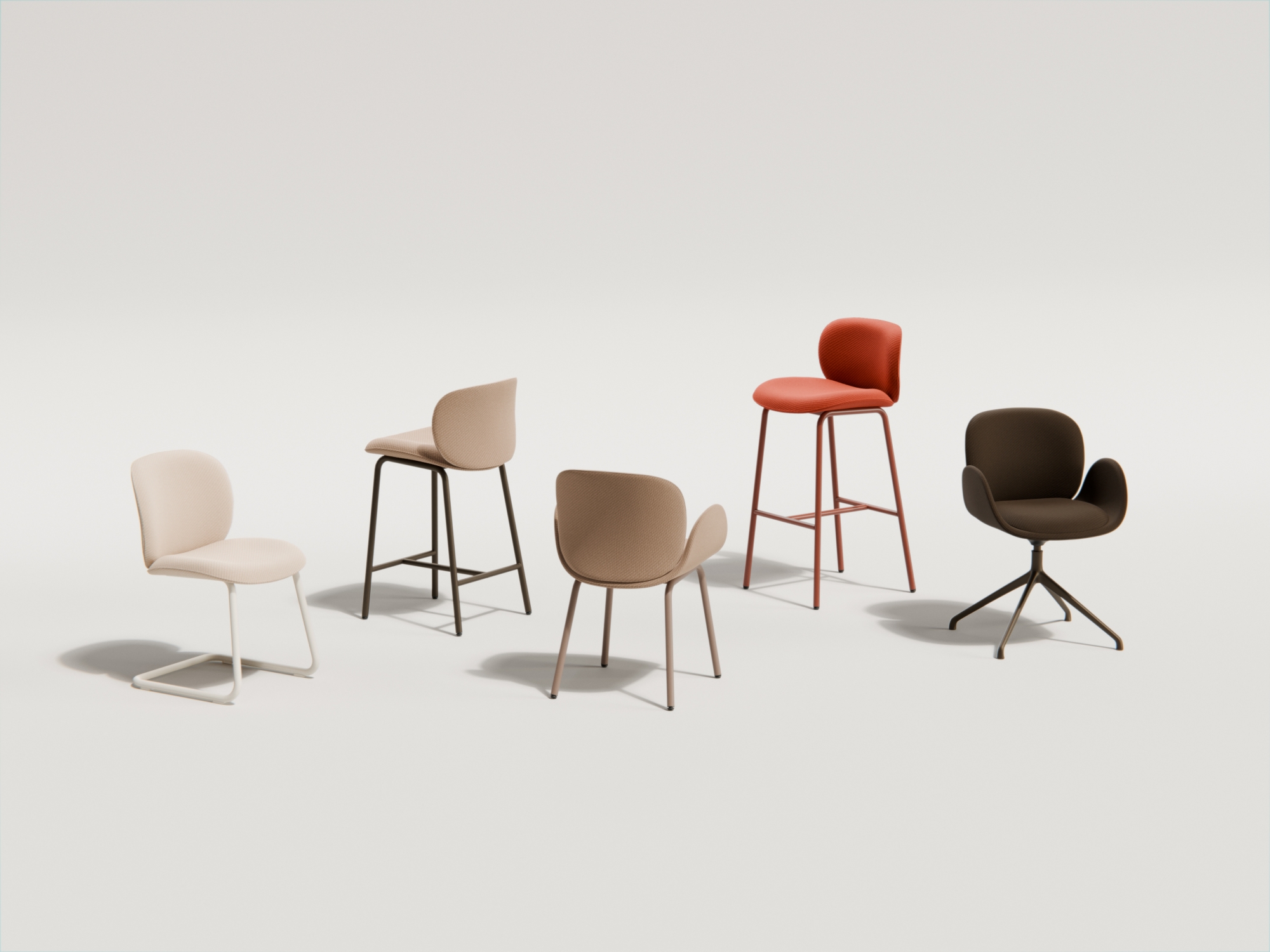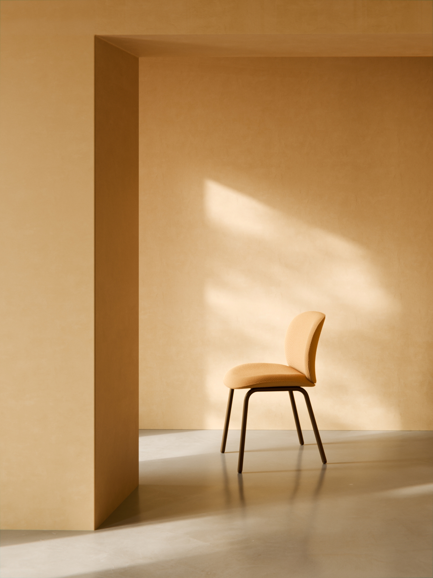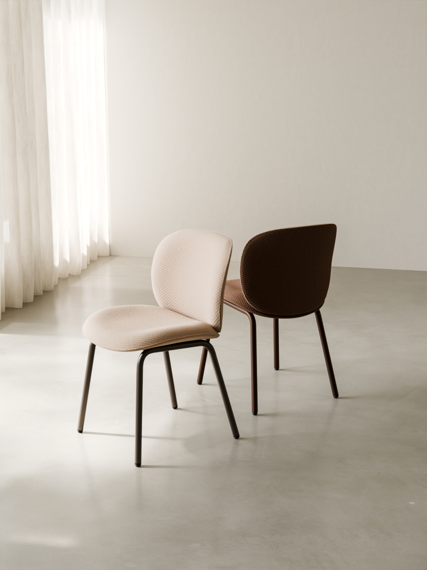 Laino, ‘cloud’ in Basque, is a chair crafted to cradle the body in comfort, with softly embracing forms and harmoniously balanced proportions. The seamless flow from backrest to seat offers a gentle, responsive support that enhances the sense of well-being, while its sturdy, refined structure gives it character and presence in any space.