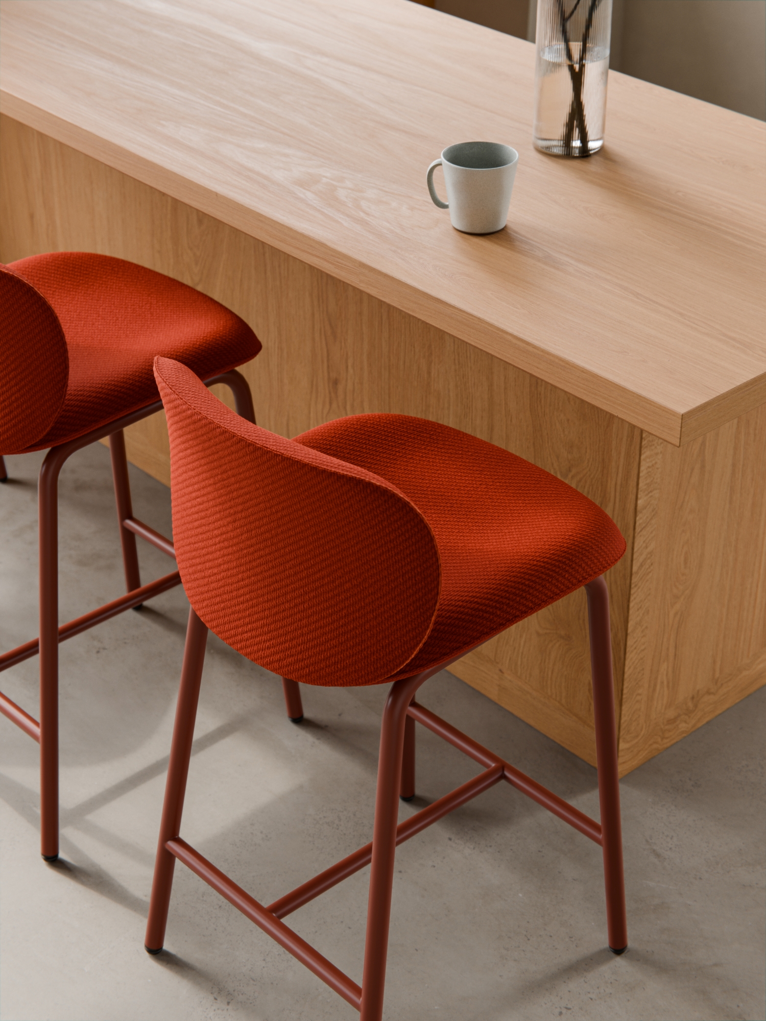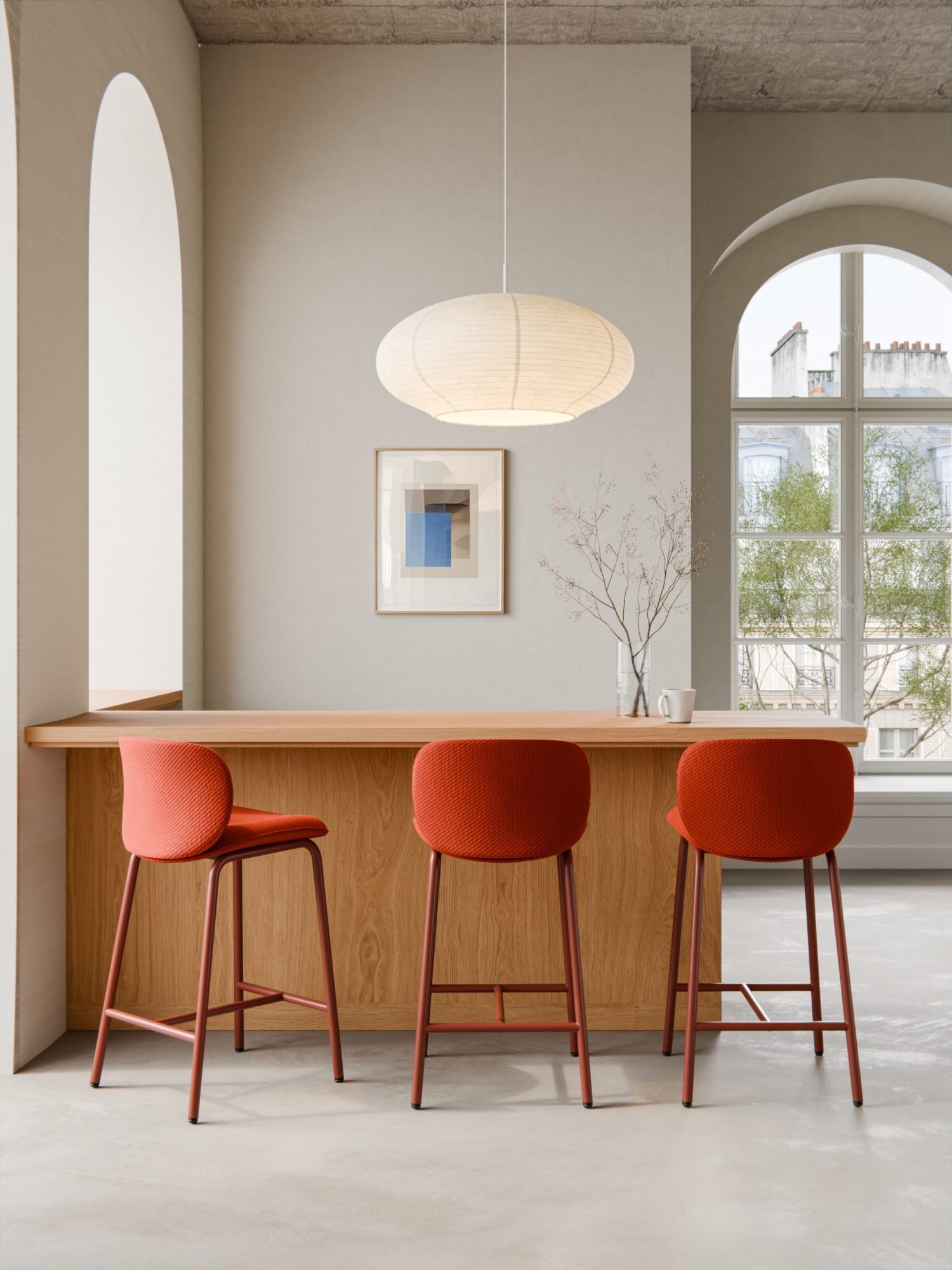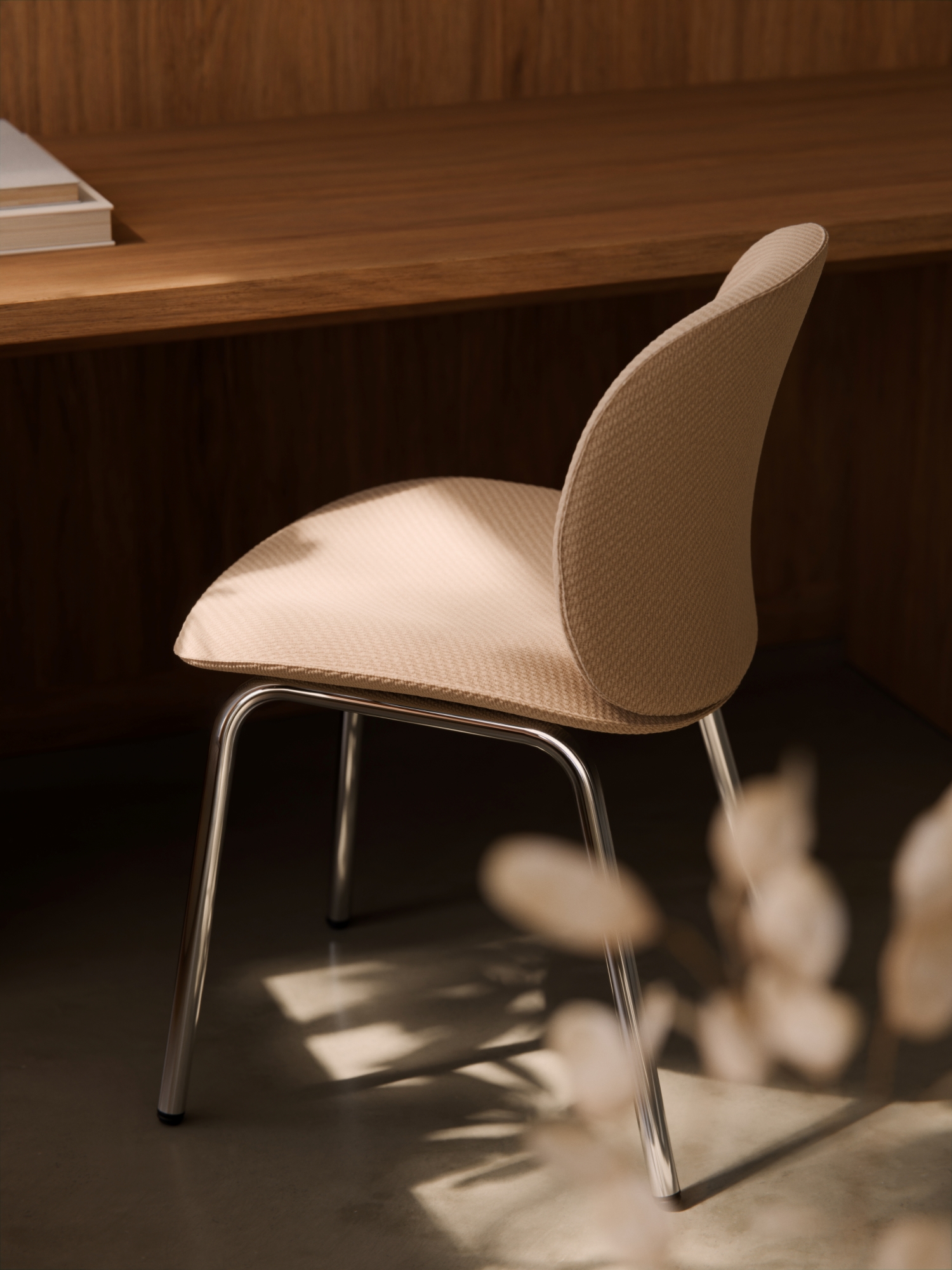 Laino, ‘cloud’ in Basque, is a chair crafted to cradle the body in comfort, with softly embracing forms and harmoniously balanced proportions. The seamless flow from backrest to seat offers a gentle, responsive support that enhances the sense of well-being, while its sturdy, refined structure gives it character and presence in any space.