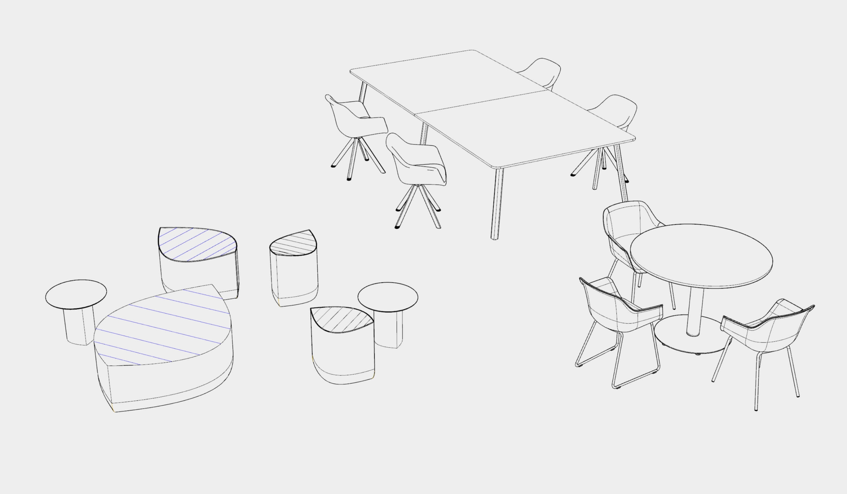 Each space has its own unique personality, reflected in the environment through the use of colour, shapes, and textures. These elements work together to draw people in and shape their experience.