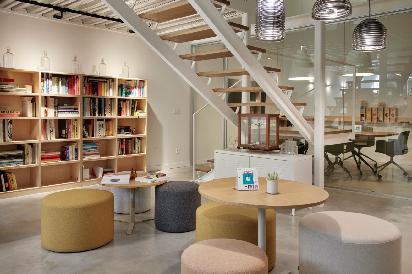 Donostia / San Sebastián, Spain Architecture: Arquitectos 2 más una Topa puf & table, Bat Office table & Muga chairs, Usoa table & Kabi armchairs, Hanna Photography: Iñaki Caperochipi