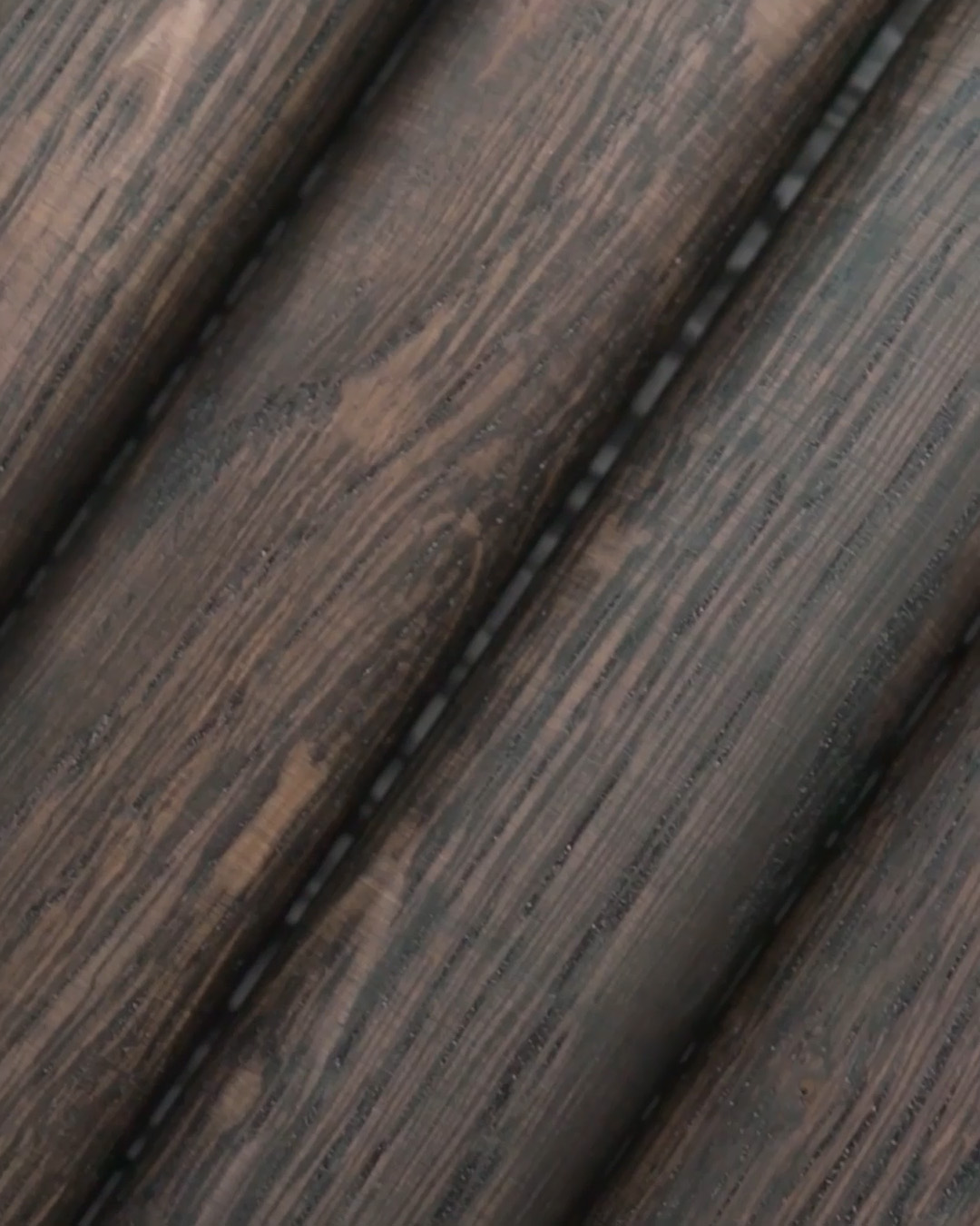 El respeto por el entorno también consiste en dejar que el carácter de las materias primas salga a la superficie. Por eso tratamos las patas de madera con aceites naturales: porque tiñen sin ocultar, realzan sin disfrazar. La veta permanece viva, el tacto es cálido, y el resultado —además de hermoso y honesto— es plenamente ecológico.