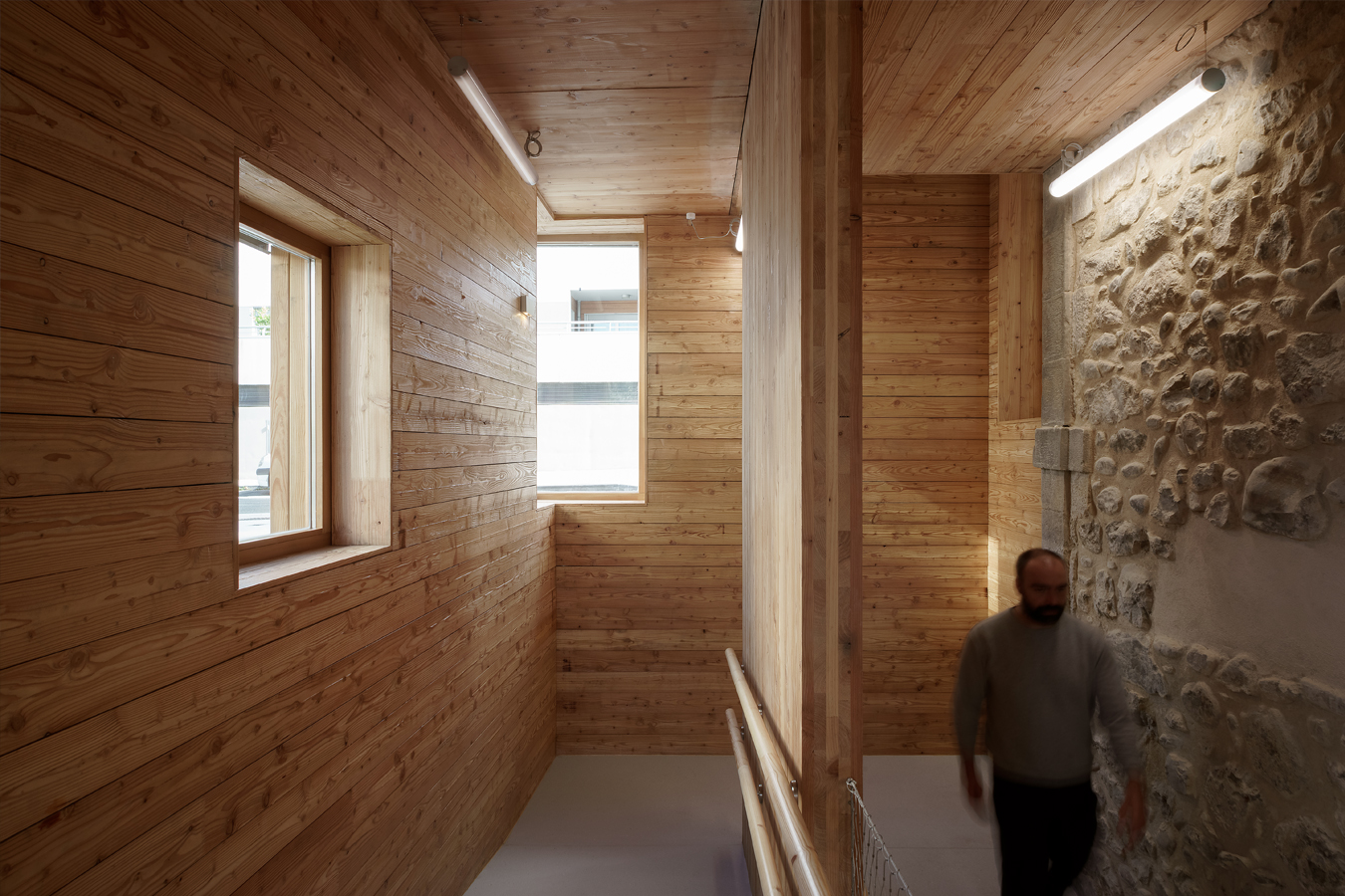 Maialen : Elegimos la madera como componente protagonista por ser un material más sostenible que el hormigón o el acero y porque que combinado con ciertos puntos de luz brinda calidez.