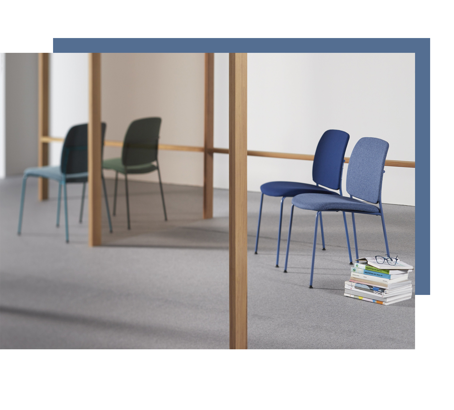Las sillas de la colección AKABA, son una demostración de variabilidad en cuanto a materiales y colores. Son diseños que admiten un sinfín de adaptaciones, lo que las convierten en unos elementos polivalentes y adaptables.